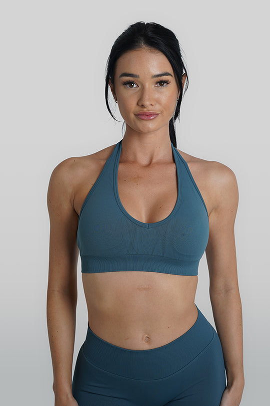 RECOIL HALTER CROP - BLUE TEAL