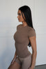 OPEN BACK CROP TEE - BROWN