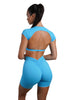 OPEN BACK CROP TEE - ICE BLUE